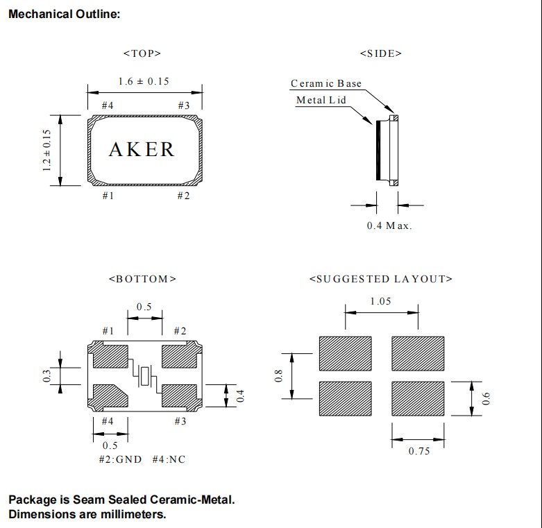 C16-40.000-10-3030-X-R,智能穿戴設(shè)備晶振,AKER超小型晶體,尺寸圖