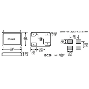 • BC26EFI120-40.000000,6035mm,40MHz,Bomar四腳貼片晶振