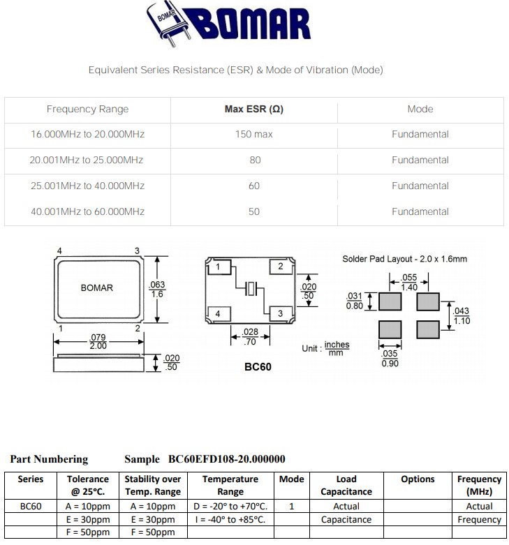 BC60EFD108-48.000000,Bomar無源晶振,平板電腦6G晶振,BC60FEI108-20.000000,SMD石英晶體,參數表