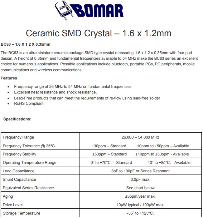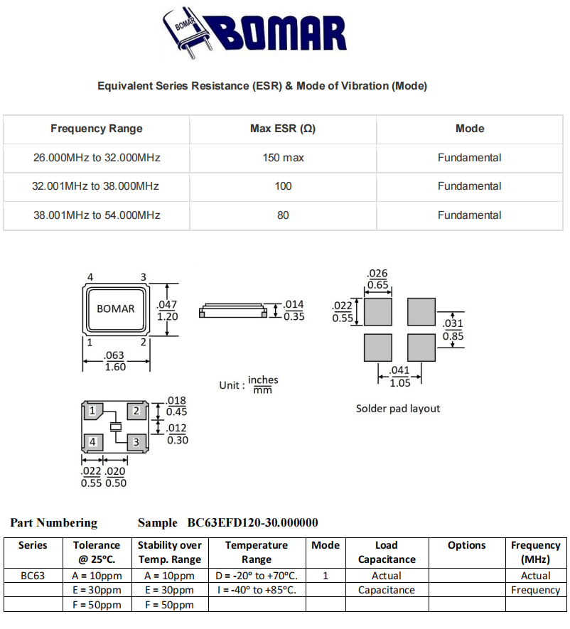 Bomar博馬爾晶振,BC63EFI120-30.000000,智能手機(jī)6G晶振,BC63AED120-45.000000,超小型晶振,參數(shù)表