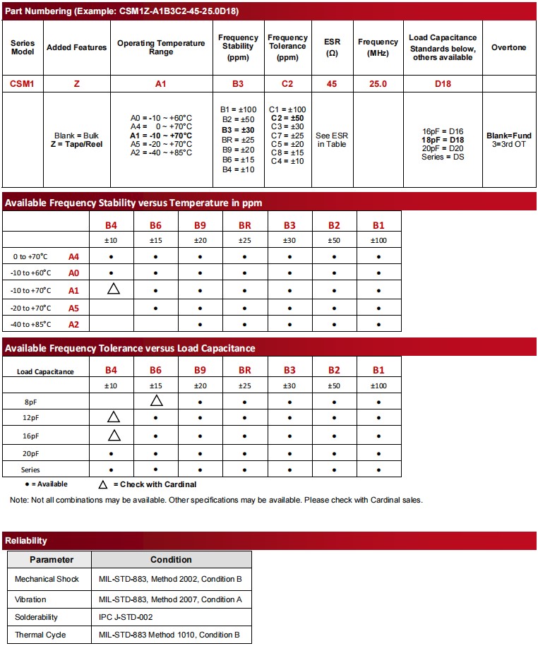 | CSM1Z-A5B2C3-40-14.7456D20 | Cardinal晶振 | CSM1 | 14.7456MHz |