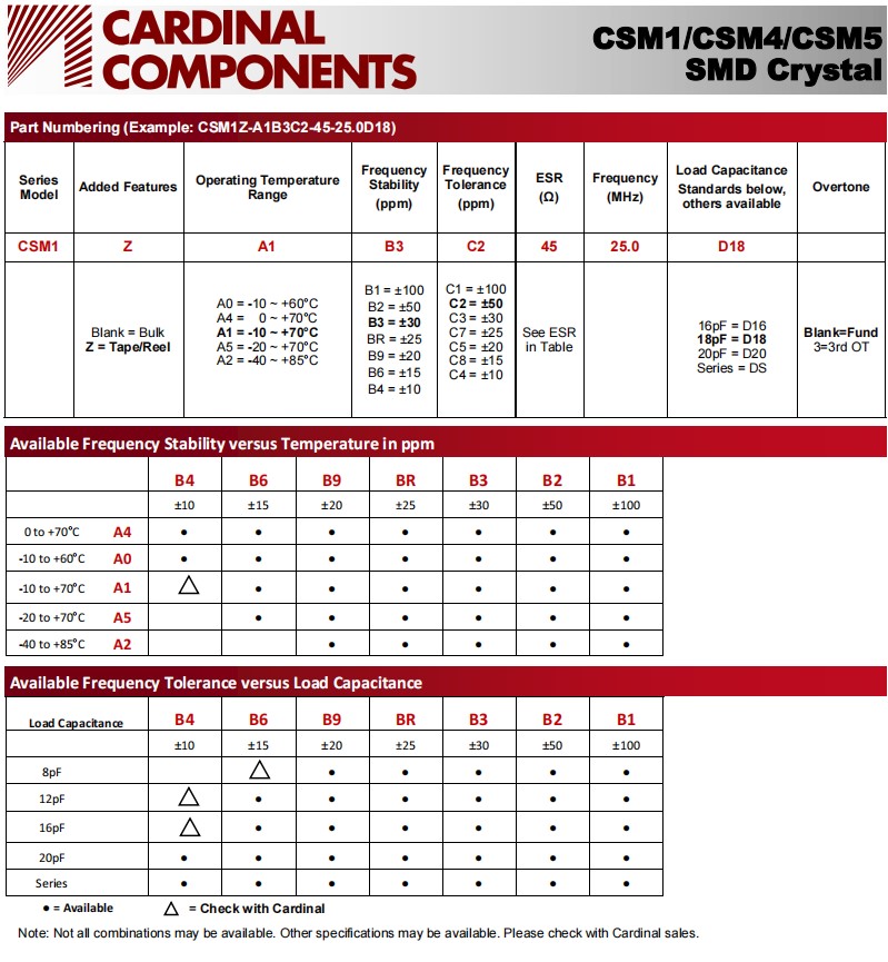 | CSM1Z-A5B2C3-40-24.576D18 | Cardinal晶振 | CSM1 | 24.576MHz |