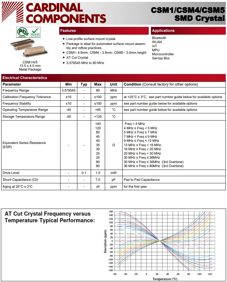 CSM1Z-A1B2C3-90-8.0D18,美國Cardinal晶振,無源晶振,藍牙晶振,產(chǎn)品特點:
