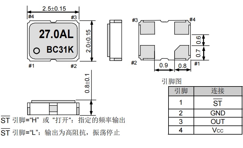 SG-210SEBA,X1G004611A00500,27MHz,EPSON有源晶振,2520mm石英晶振,儀器設(shè)備晶振,尺寸圖