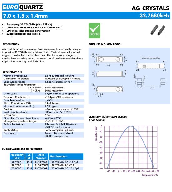 Euroquartz晶振為一家具有專業晶振知識的跨國獨立歐洲石英晶振公司.Euroquartz Crystal公司成立于1982年,1987年成功收購三戰期間形成的英國石英晶體制.Euroquartz晶振,AG晶振,32.768kHz-AG-12.5pF晶振.