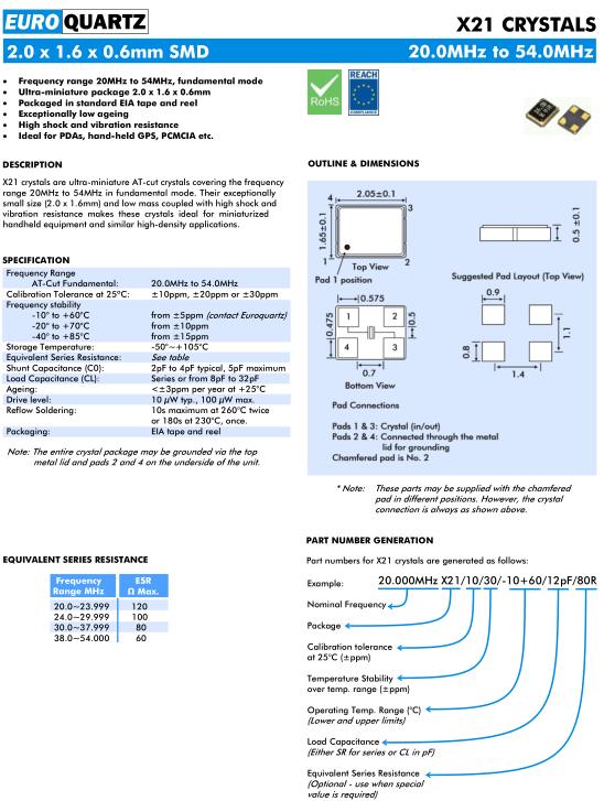 | AT-Cut Fundamental: | 20.0MHz to 54.0MHz | |