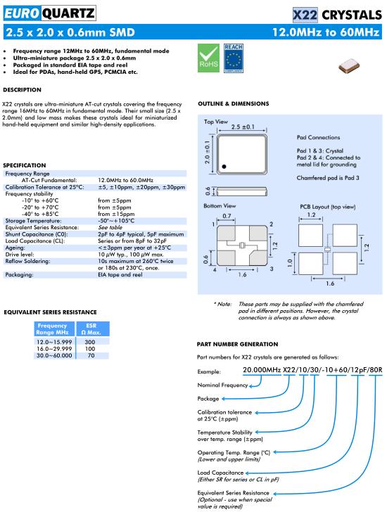 | AT-Cut Fundamental: | 12.0MHz to 60.0MHz | |