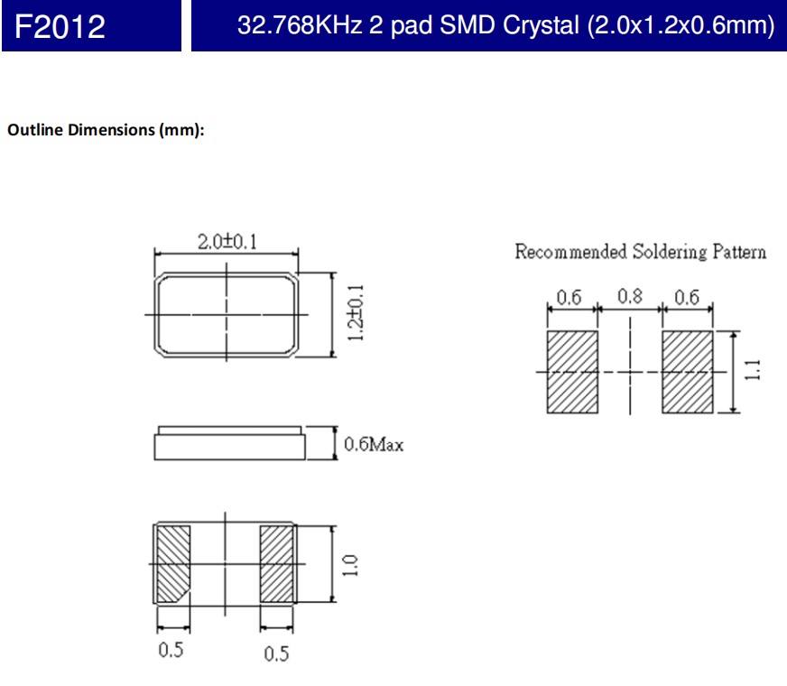 外形尺寸:2.0x1.2x0.6mm