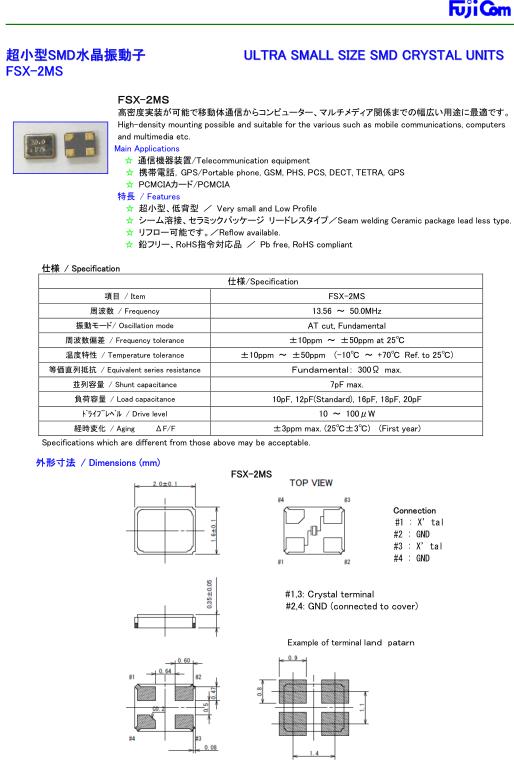 Fujicom晶振,FSX-2MS晶振,無源四腳晶振,貼片晶振本身體積小,超薄型石英晶體振蕩器,特別適用于有目前高速發展的高端電子數碼產品,因為晶振本身小型化需求的市場領域,小型,薄型是對應陶瓷振蕩器(偏差大)和普通的石英晶體振蕩器(偏差小)的中間領域的一種性價比較出色的產品.產品廣泛用于筆記本電腦,無線電話,衛星導航SSD,USB,Blu-ray等用途,符合無鉛焊接的高溫回流焊曲線特性.