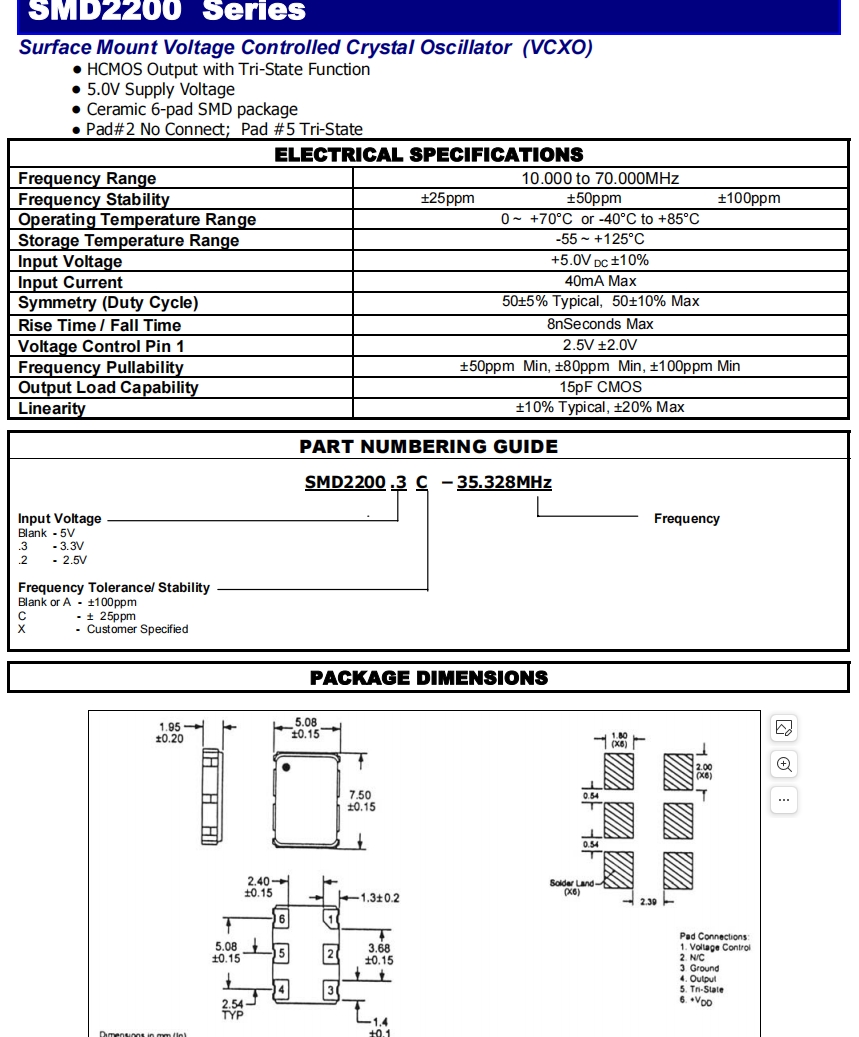 6G路由器晶振,SMD2200.3C-24.000MHz,GED壓控振蕩器 參數(shù)表