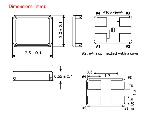 KX-6E,12.8655,16MHz,2520mm,Geyer石英晶體諧振器,石英貼片晶振,車載控制器晶振,尺寸圖