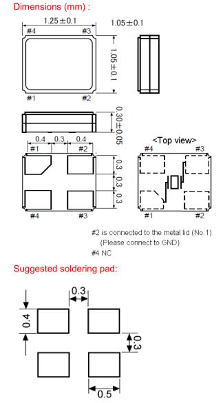 standard ±20 ppm available ±10 ~ ±50 ppm |