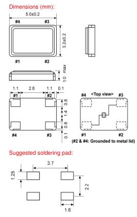 standard ±30 ppm available ±10 ~ ±50 ppm |