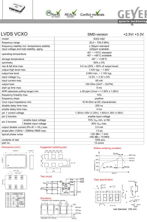 Geyer晶振,KXO-V62晶振,5032mm有源晶振,5032mm體積的石英晶體振蕩器,有源晶振,該產(chǎn)品可驅(qū)動(dòng)2.5V的溫補(bǔ)晶振,壓控晶振,VC-TCXO晶體振蕩器產(chǎn)品,電源電壓的低電耗型,編帶包裝方式,可對(duì)應(yīng)自動(dòng)高速貼片機(jī)自動(dòng)焊接,及IR回流焊接(無(wú)鉛對(duì)應(yīng)),為無(wú)鉛產(chǎn)品,超小型,質(zhì)地輕.產(chǎn)品被廣泛應(yīng)用到集成電路,程控交換系統(tǒng),無(wú)線發(fā)射基站.