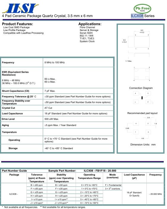 ESR (Equivalent Series Resistance) 8 MHz – 48 MHz 36 MHz – 100.0 MHz (3 rd O.T.) |