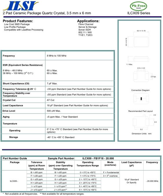 ILSI晶振,ILCX09晶振,ILCX09-FB1F18-20.000晶振,貼片晶振本身體積小,超薄型石英晶體振蕩器,特別適用于有目前高速發展的高端電子數碼產品,因為晶振本身小型化需求的市場領域,小型,薄型是對應陶瓷振蕩器(偏差大)和普通的石英晶體振蕩器(偏差小)的中間領域的一種性價比較出色的產品.產品廣泛用于筆記本電腦,無線電話,衛星導航SSD,USB,Blu-ray等用途,符合無鉛焊接的高溫回流焊曲線特性.
