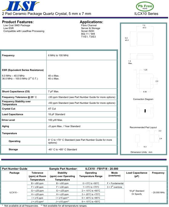 ESR (Equivalent Series Resistance) 8 MHz – 48 MHz 36 MHz – 100.0 MHz (3 rd O.T.) |