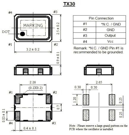 ITTI晶振,TX30晶振,TX302.5-3085-24.000晶振,小型SMD有源晶振,從最初超大體積到現在的7050mm,6035mm,5032mm,3225mm,2520mm體積,有著翻天覆地的改變,體積的變小也使產品帶來了更高的穩定性能,接縫密封石英晶體振蕩器,精度高,覆蓋頻率范圍寬的特點,SMD高速自動安裝和高溫回流焊設計,Optionable待機輸出三態輸出功能,電源電壓范圍:1.8V~5V,高穩定性,低抖動,低功耗,主要應用領域:無線通訊,高端智能手機,平板筆記本WLAN,藍牙,數碼相機,DSL和其他IT產品的晶振應用,三態功能,PC和LCDM等高端數碼領域,符合RoHS/無鉛.