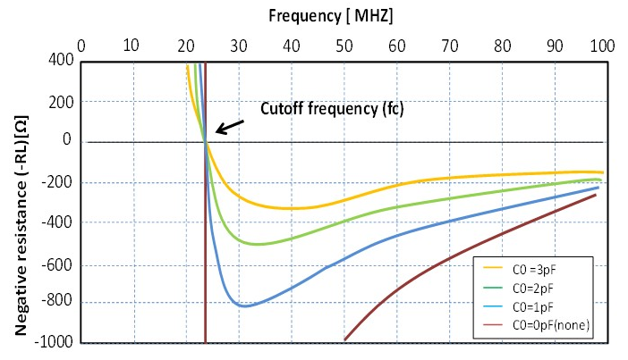 首先應該按照-R的需求選擇Cg/Cd,在滿足TS的情況下應盡量選取電容小一些,以保持較高的–R確保電路振蕩的穩定性.當無法滿足-R要求時應考慮對IC的特性重新評估、選擇. ※ -R的計算公式:-R = gm/ {ω2 *(Cg*Cd)} gm為互導,單位:S(西門子)※ 早期測試-R的儀器有HP-4195A等,但現階段皆改為crystal搭配VR實測法.※ -R的要求(標準): -R≧ 3~10 Max ESR. ,若-R低于3倍時會因石英諧振器與電路的匹配不良而容易出現不起振或振蕩不穩定、振蕩啟動時間延長等問題. .jpg)