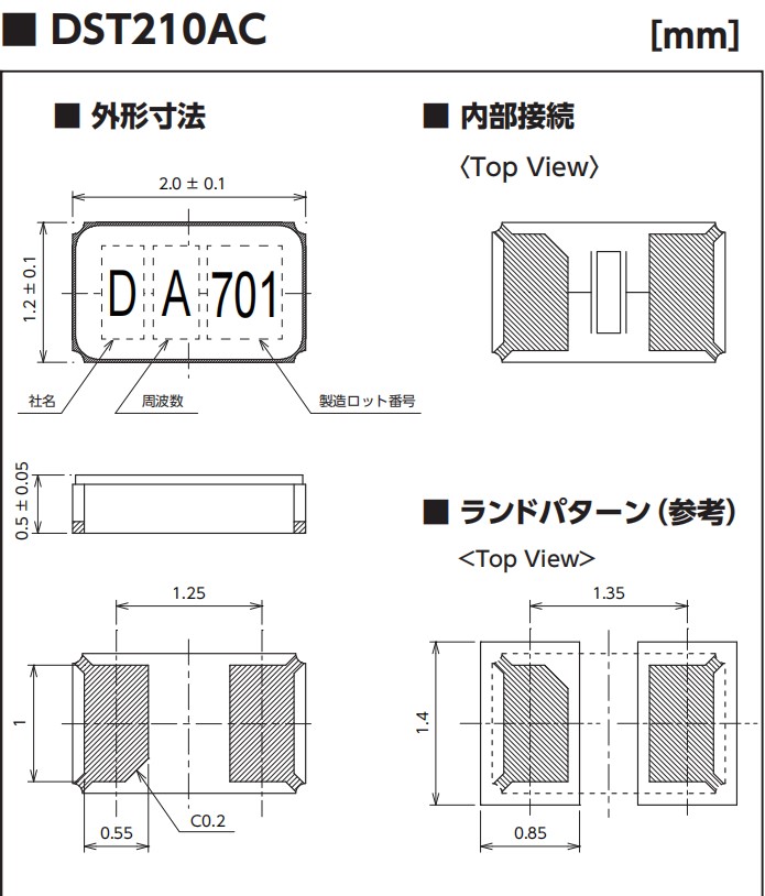 大真空KDSCrystal,DST210AC計時器晶振,1TJ125DR1AC054 尺寸圖