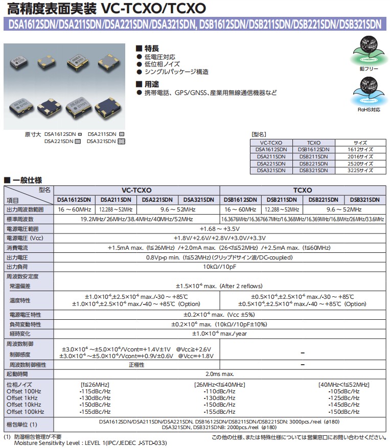 KDS低電壓晶振,DSA211SDN壓控溫補(bǔ)晶體振蕩器,1XXC19200MEA移動電話晶振,2016mm有源晶振,四腳貼片晶振,2016mm體積的石英晶體振蕩器有源晶振,該產(chǎn)品可驅(qū)動2.5V的溫補(bǔ)晶振,VC-TCXO壓控溫補(bǔ)振蕩器產(chǎn)品,電源電壓的低電耗型,編帶包裝方式,可對應(yīng)自動高速貼片機(jī)自動焊接,及IR回流焊接(無鉛對應(yīng)),為無鉛產(chǎn)品,超小型,質(zhì)地輕.產(chǎn)品被廣泛應(yīng)用到集成電路,程控交換系統(tǒng),無線發(fā)射基站.