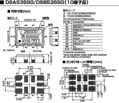 DSB535SG溫補晶振,KDS晶振,5032晶振該體積產(chǎn)品最適合于GPS,以及衛(wèi)星通訊系統(tǒng),智能電話等多用途的高穩(wěn)定的頻率溫度特性晶振.為對應(yīng)低電源電壓的產(chǎn)品.(DC+1.8V ± 0.1V to +2.9V ± 0.1V 對應(yīng)IC可能) 高度:最高0.8 mm,體積:0.0022 cm3,重量:0.008 g,超小型,輕型.低消耗電流,表面貼片型產(chǎn)品.