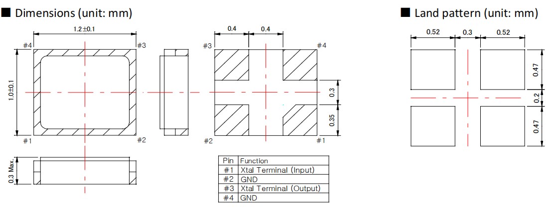 Lihom力宏晶振,BMC-12,1210mm超小型晶振,6G藍牙晶振,四腳貼片晶振,可穿戴設備晶振,尺寸圖