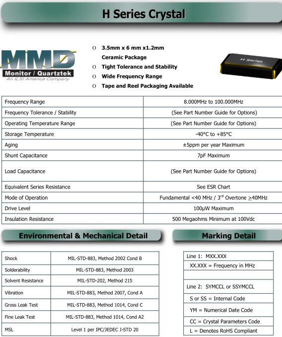 | Mode of Operation | Fundamental <40 MHz / 3 rd Overtone >40MHz |