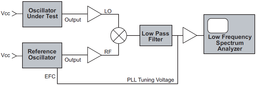 有許多方法可以測量或表達這種振蕩器噪聲現象,但是精密振蕩器最常見的方法是相位噪聲.相位噪聲在頻域中測量,繪制為信號振幅對頻率的關系圖.這是顯示在光譜分析儀上的表示.對于相對有噪聲的信號,如果測量帶寬設置正確,相位噪聲可以直接在頻譜分析儀上觀察到.然而,對于諸如大多數晶體振蕩器產生的干凈信號,分析儀寬帶本地振蕩器的噪聲高于待測源的噪聲,因此無法直接觀察到來自被測單元的噪聲.因此,必須采用一些提高測量系統靈敏度的方法. 實現這種靈敏度提高的常見方法是比較一個振蕩器和另一個振蕩器.這是大多數有源晶振商用相位噪聲測量系統的工作方式.一個非常低噪聲的參考振蕩器被調整到與被測單元完全相同的頻率.當這兩個信號被饋入相位檢測器時,它們的相對相位被調整并鎖定在90度偏移處,載波頻率在混頻器中被抵消.在對高頻分量進行濾波之后,僅保留已經混合到基帶頻率的殘余噪聲調制.該噪聲信號然后被放大以增加靈敏度.由于高頻信號已經通過混合和濾波過程被去除,因此殘余噪聲信號可以用非常低的帶寬分析器進行檢查.
