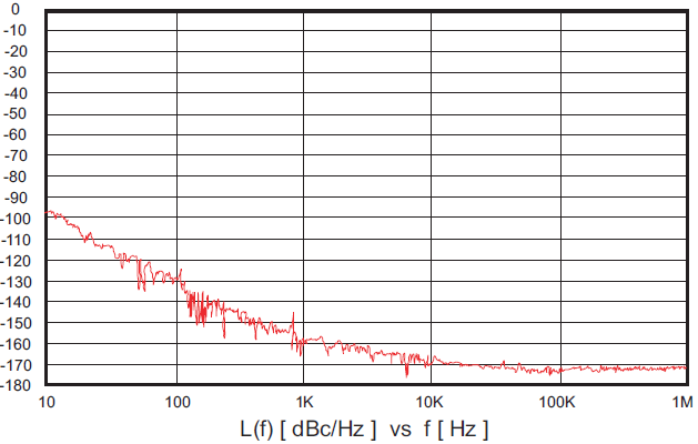 為了使相位噪聲測量標準化,結果通常表示為在距離中心載波給定偏移距離的1Hz帶寬中量的邊帶噪聲功率載波信號功率的頻率.然后繪制出如圖所示的曲線圖.