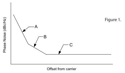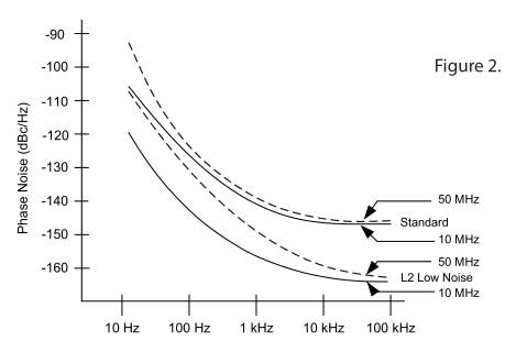圖1的區域C稱為白噪聲或寬帶噪聲.“L2”晶體振蕩器中的特殊低噪聲電路相對于標準設計提供了顯著的改進(15-20dB).