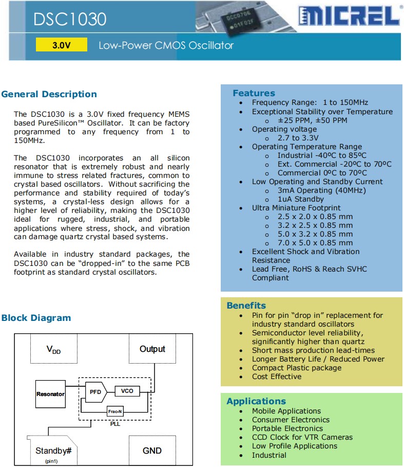 | DSC1030BC1-008.0000T | 晶振廠家 | DSC1030 | 8MHz |