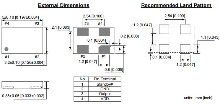 DSC1030BI1-125.0000T,Microchip高精度晶振,5032mm,低功耗晶振,尺寸圖