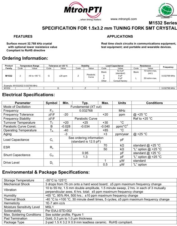 MtronPTI Crystal麥特倫皮晶振公司成立于1965年.是高可靠性,應用設計和制造定制RF微波解決方案公司.MtronPTI晶振公司是LGL合資子公司,專業向市場供應優質的有源晶振,陶瓷諧振器,濾波器等元件,并得到廣大用戶的深度認可.MtronPTI晶振,M1532晶振,M15322GZ0.032768MHz晶振.