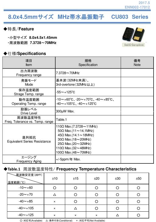 NAKA晶振,CU803晶振,無源兩腳晶振,貼片晶振本身體積小,超薄型石英晶體振蕩器,特別適用于有目前高速發(fā)展的高端電子數(shù)碼產(chǎn)品,因?yàn)榫д癖旧硇⌒突枨蟮氖袌鲱I(lǐng)域,小型,薄型是對應(yīng)陶瓷振蕩器(偏差大)和普通的石英晶體振蕩器(偏差小)的中間領(lǐng)域的一種性價比較出色的產(chǎn)品.產(chǎn)品廣泛用于筆記本電腦,無線電話,衛(wèi)星導(dǎo)航SSD,USB,Blu-ray等用途,符合無鉛焊接的高溫回流焊曲線特性.