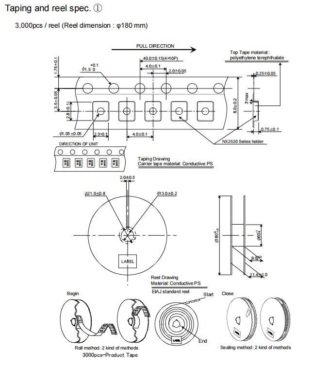 NX2520SA-16MHZ-STD-CSW-5 8pF 2520 16MHz -40℃~+85℃無線設備晶振,膠帶和卷軸規格