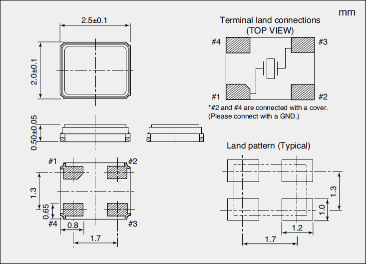 NX2520SA-16MHZ-STD-CSW-5 8pF 2520 16MHz -40℃~+85℃無線設備晶振,尺寸圖