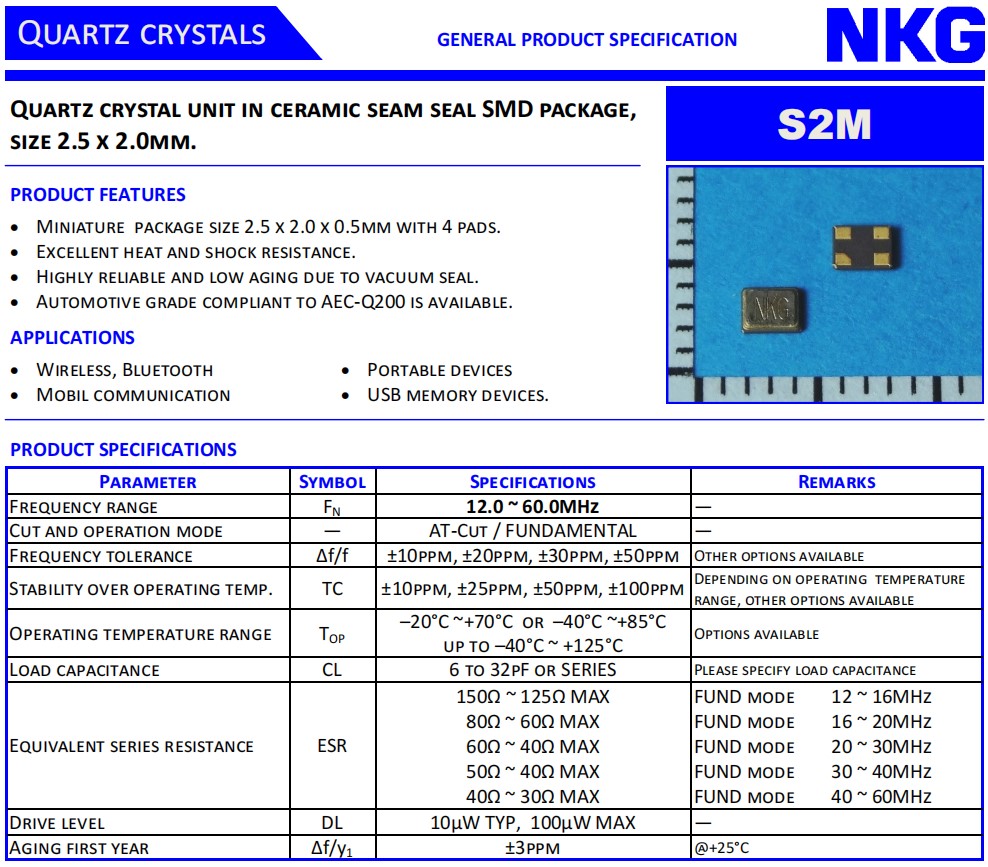 S2M16.0000T18E23-EXT,NKG諧振器,6G無(wú)線網(wǎng)絡(luò)晶振,S2M20.0000T18F2Y-EXT,石英貼片晶振,參數(shù)表