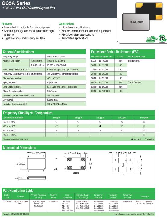 | General Specifications-QANTEK晶振 | QC5A晶振 | |