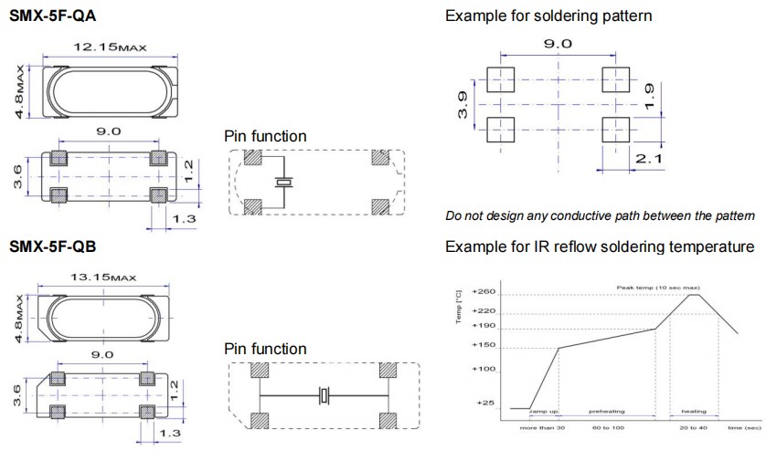 SMX-5F-QA,SMX-5F-QB,18.432MHz,QuartzCom石英通晶振,無源晶振,汽車電子晶振,瑞士進口晶振,QuartzCom石英通晶振,型號:SMX-5F-QA,尺寸為:12.15x4.8mm,型號:SMX-5F-QB,尺寸為:13.15x4.8mm,與幾種塑料模制水晶兼容的引腳,是一款小體積晶振,四腳貼片晶振,無源晶振,薄型SMD晶振,石英晶振,石英晶體諧振器,無鉛環保晶振,寬頻率范圍:3.5MHz至70MHz,回流焊@260°C,工作溫度范圍:-20℃至+70℃商業應用,-40℃至+85℃工業應用,-40℃至+125℃汽車和應用。具有超小型,輕薄型,高精度,高性能,高品質,高可靠性、低成本的晶體,耐熱及耐環境特點。進口晶振,應用于:通訊設備,無線網絡,藍牙模塊,電信晶振,音頻晶振,導航晶振,儀器設備晶振,汽車電子,智能家居等應用。
