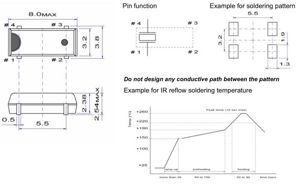 在一個不同擴張系數電路板(環氧玻璃)上焊接陶瓷封裝石英晶振時,在溫度長時間重復變化時可能導致端子焊接部分發生斷裂,請事先檢查焊接特性。QuartzCom晶振,SMX-206T晶振,8038mm晶振.