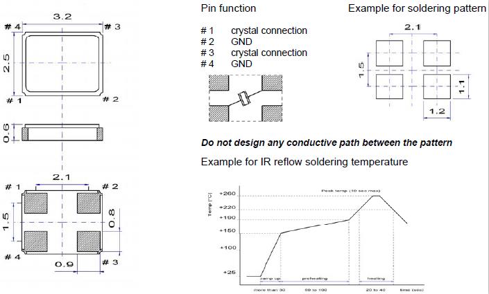 在一個不同擴張系數電路板(環氧玻璃)上焊接陶瓷封裝石英晶振時,在溫度長時間重復變化時可能導致端子焊接部分發生斷裂,請事先檢查焊接特性。QuartzCom晶振,SMX-5S晶振,汽車專用晶振.