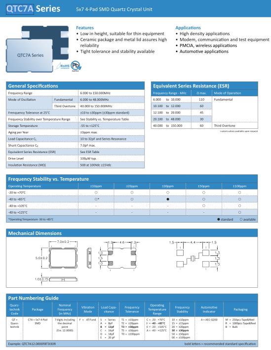 | Mode of Oscillation | Fundamental | 6.000 to 48.000MHz |