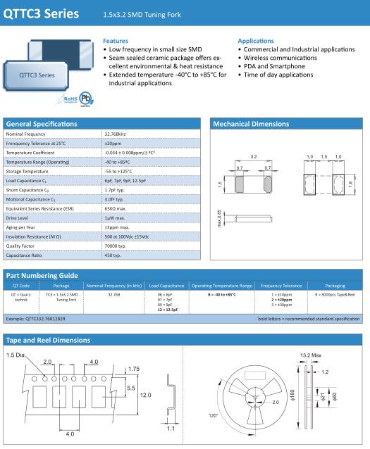 Quarztechnik晶振,QTTC3晶振,QTTC332.76812B2R晶振,32.768K時鐘晶體具有小型,薄型,輕型的貼片晶振表面音叉型晶體振蕩器,產品具有優良的耐熱性,耐環境特性,可發揮晶振優良的電氣特性,符合RoHS規定,滿足無鉛焊接的高溫回流溫度曲線要求,金屬外殼的封裝使得產品在封裝時能發揮比陶瓷振蕩器外殼更好的耐沖擊性.