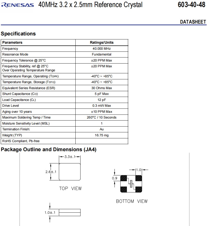 Renesas無源晶振,603-40-48JA4I8,6G無線網(wǎng)絡(luò)晶振,參數(shù)表