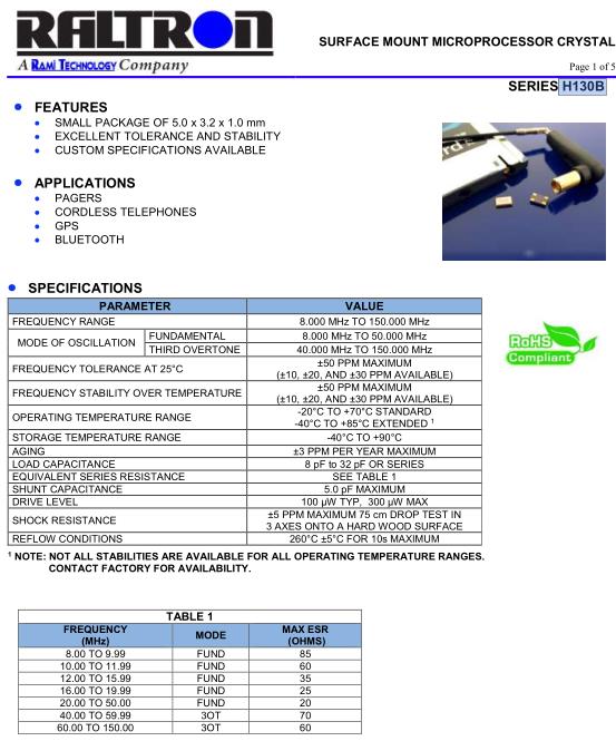 | DRIVE LEVEL | 100 µW TYP, 500 µW MAX | |