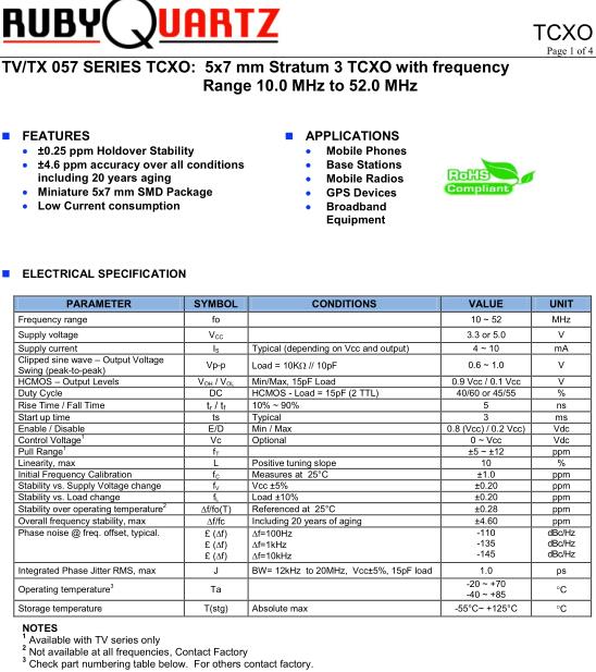 Rubyquartz晶振-Rubyquartz Crystal是領先的頻率元件供應商之一,主要提供市場盧柏貼片晶振,有源晶振,溫補晶振,石英晶體等,Rubyquartz晶振集團致力于向全球用戶提供優質的晶振產品,并確保每一顆晶振的完整度,讓用戶使用上性能優越,價格低廉的晶振產品.Rubyquartz晶振,TV057晶振,TV057A-D3-0.28-26.000-3-TR晶振.
