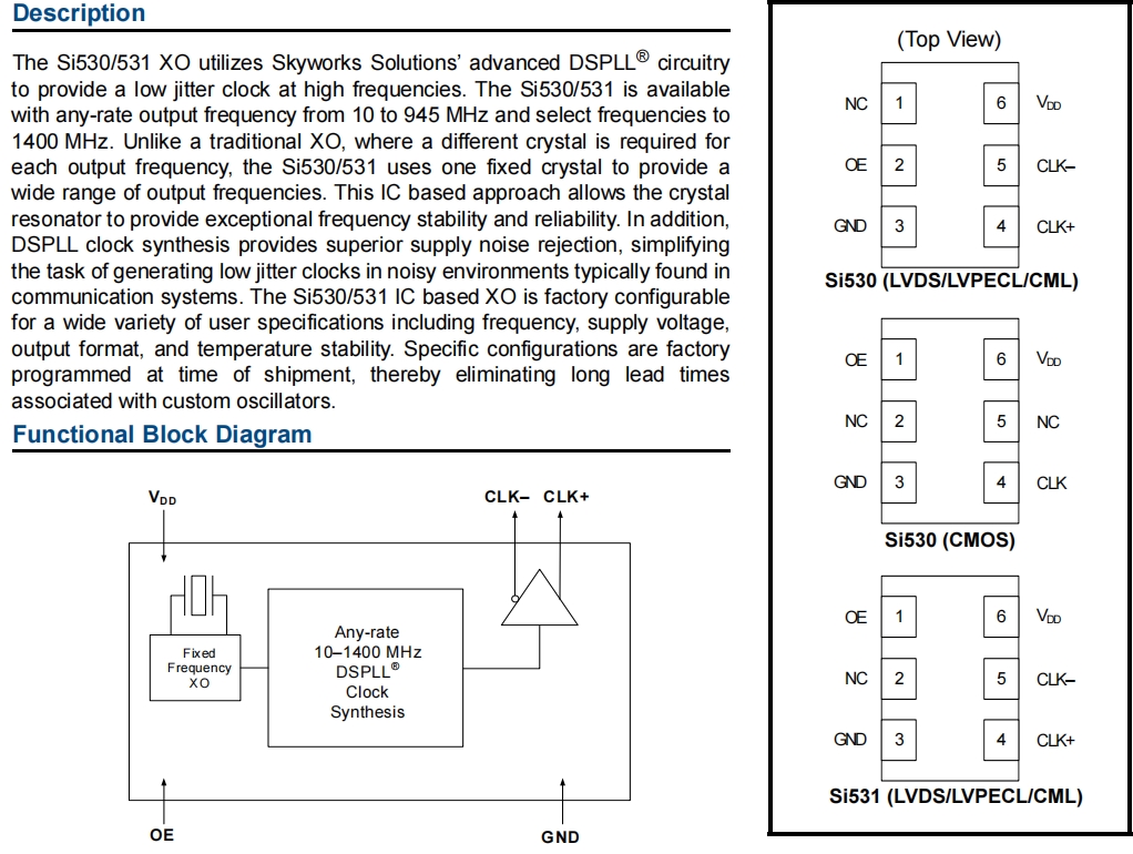 | 531BA48M0000DGR | Skyworks有源晶振 | DIFFERENTIAL/SINGLE-ENDED; SINGL | Si531 | 48 MHz | LVDS |