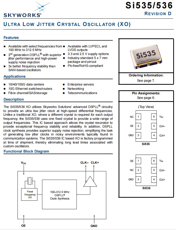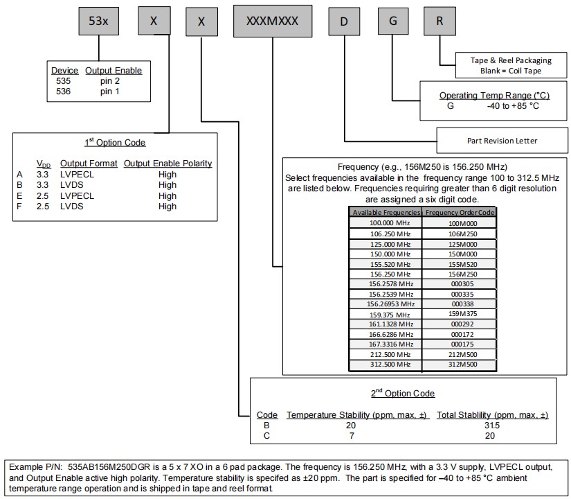 | 535AB000335DG | Skyworks晶振 | Si535 | 156.2539 MHz | LVPECL | 3.3V |