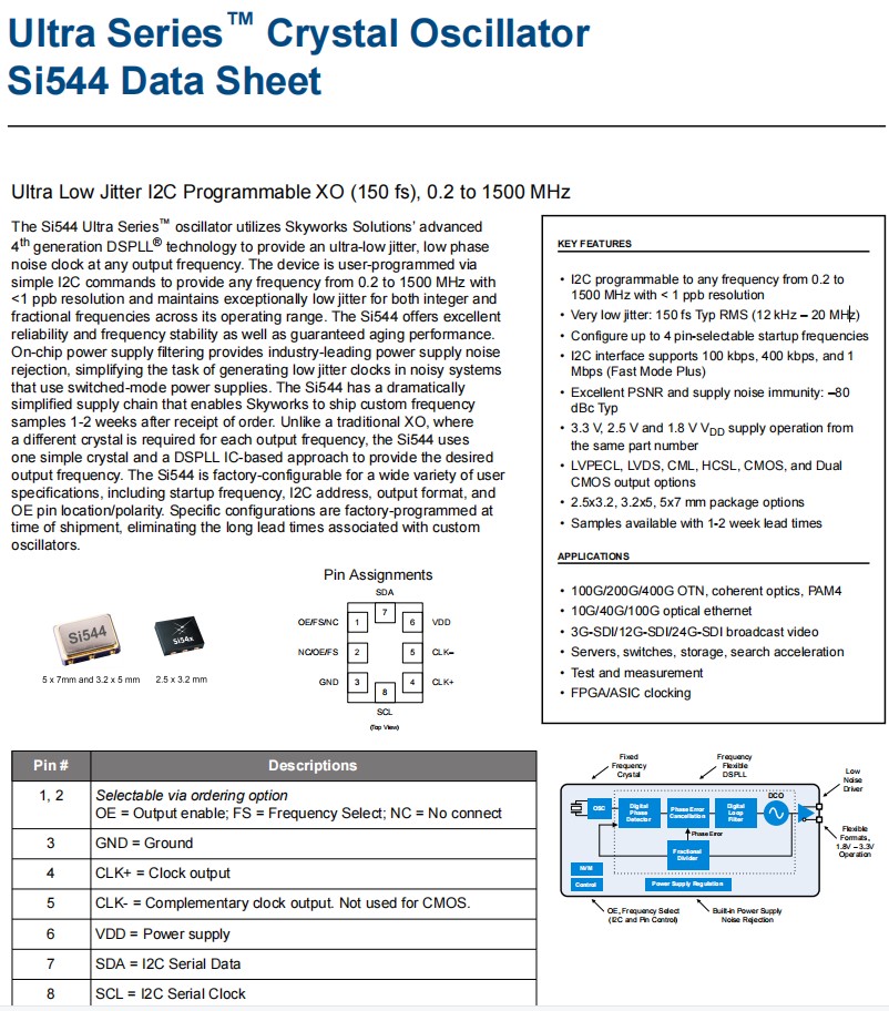 | 544AAAA000118BBG | Skyworks晶振 | Si544 | 156.25 MHz | LVPECL | 2.5V, 3.3V |